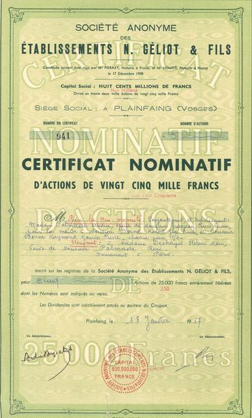 S.A des Ets N. Géliot & Fils (Cn Act de 25000 F)