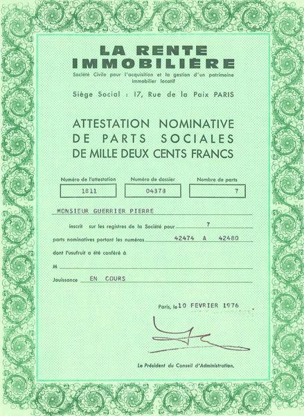 La Rente Immobilière (Attestation Nomin 1200F)
