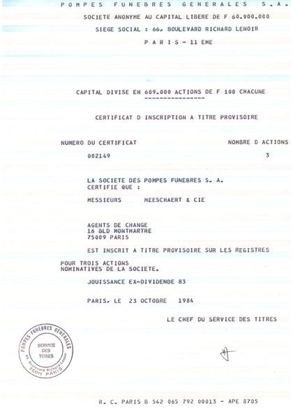 Pompes Funèbres Gales S.A (Certif Nomin)