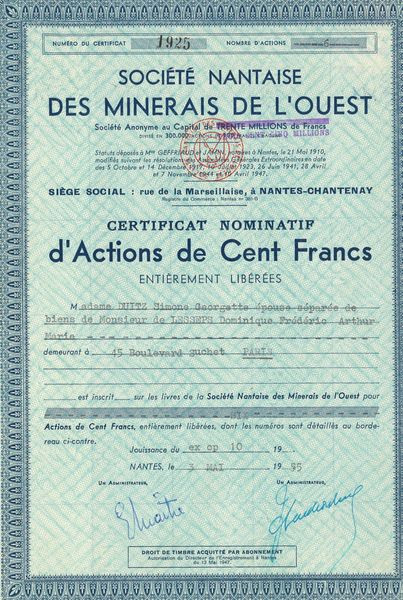 Sté Nantaise des Minerais de l'Ouest (CN Act 100F)