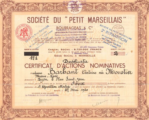 Sté du "Petit Marseillais" - Bourrageas & Cie (CN Act 100F)