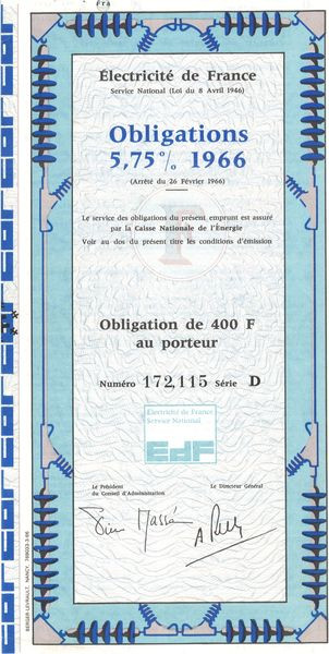 Electricité de France - Obligations 5.75 % 1966 (Obl 400 F)