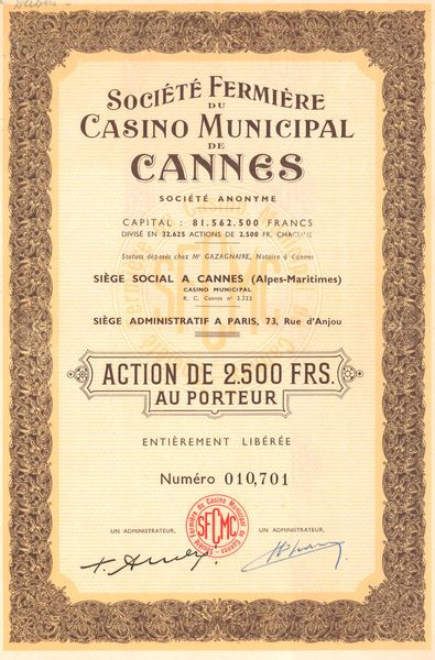 Sté Fermière du Casino Municipal de Cannes (Act 2500 F)
