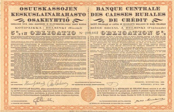Banque Centrale des Caisses Rurales de Crédit. Sté Finlandaise (Obl 5%)