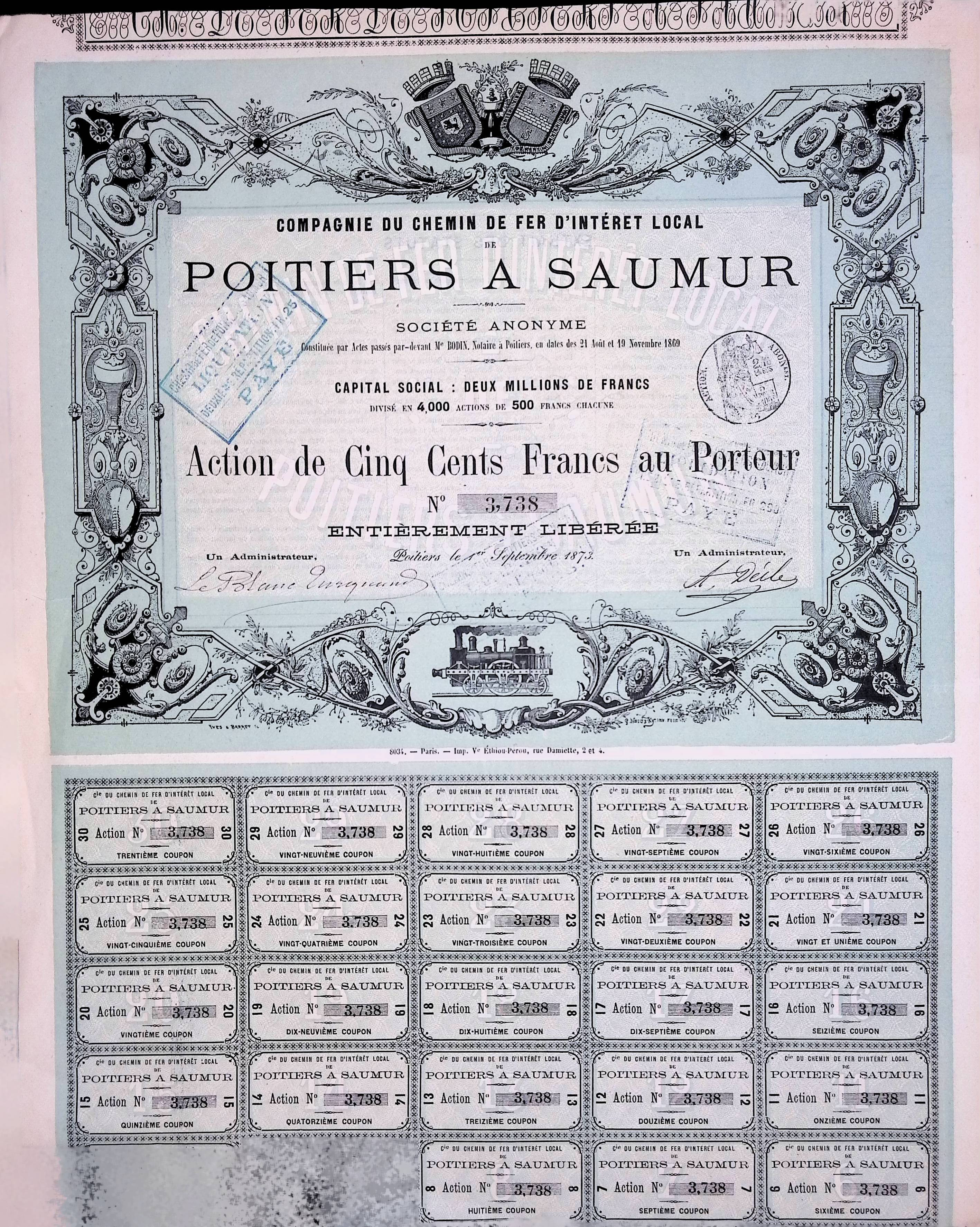 Cie du Chemin de Fer d'intérêt local de Poitiers à Saumur