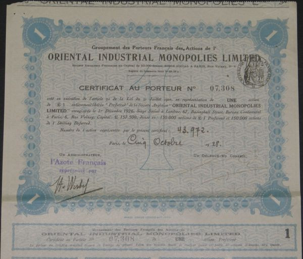 Oriental Industrial Monopolies Ltd (1 Ac)
