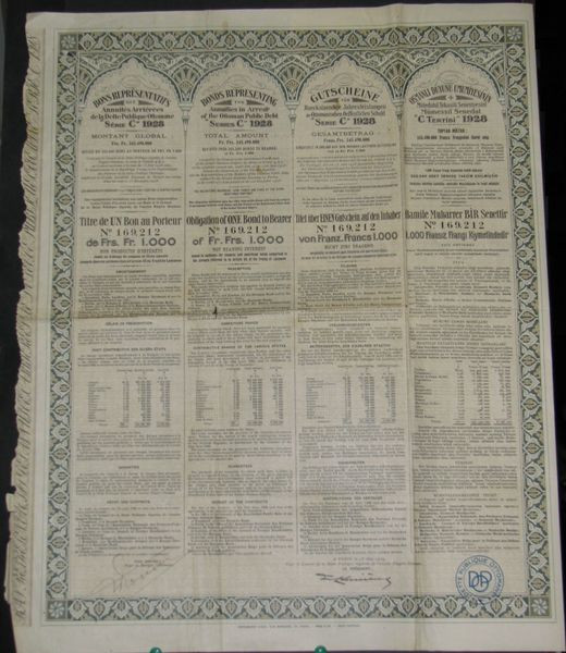 Bons Représentatifs des Annuités Arriérées de la Dette Publique Ottomane "Série C" 1928