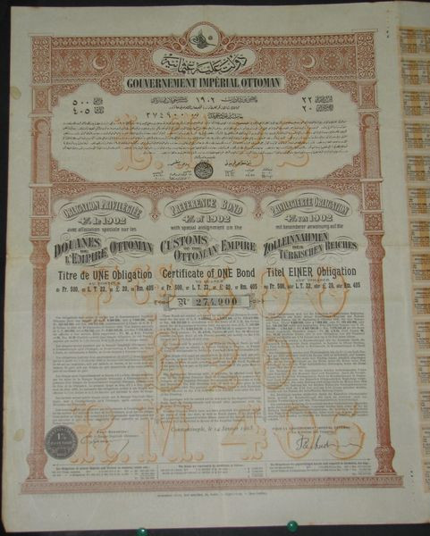 Gvt Impérial Ottoman - Obl Privilégiée 4 % de 1902 avec affectation spéciale sur les Douanes de l'Empire Ottoman