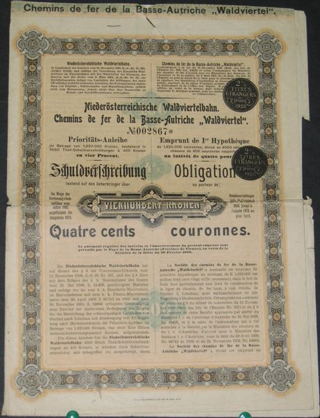 Chemins de Fer de la Basse-Autriche "Waldviertel" - Emprunt de 1re Hypothèque
