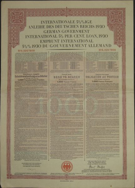 Emprunt International 5 1/2 % 1930 du Gvt Allemand