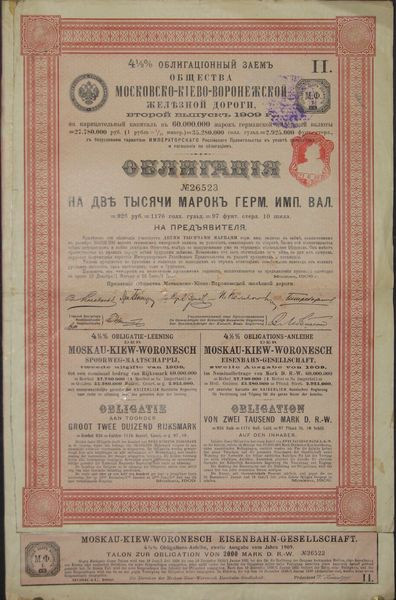Sté du Chemin de Fer Moscou-Kiev-Voronège - Emprunt 4.5 % - 1909