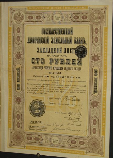 Banque Impériale Foncière de la Noblesse - Lettre de gage 4 % sans lots - 1903 - 100 Rbl