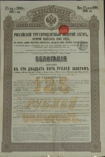 Emprunt Russe 3 % Or de 1894 - 125 Rbl Or