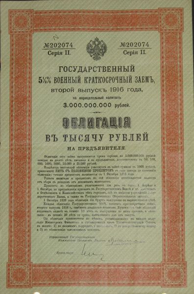 Emprunt Militaire 5 1/2 % 1916 - Série 2 - 1000 Rbl