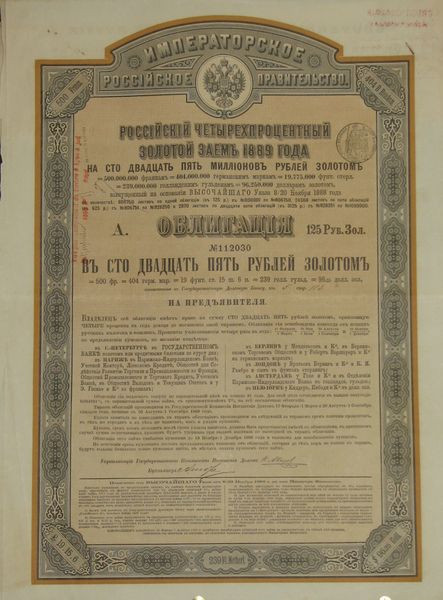 Emprunt Russe 4 % Or de 1889 - 125 Rbl Or