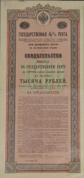 Rente Russe 4 % - 1000 Rbl - Série 86