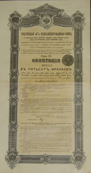Rente Russe Consolidée 4 % 1901 - 187.50 Rbl - Série 30