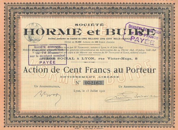 Sté Nlle des Ets de l'Horme et de la Buire (Act 100 F)(marron)
