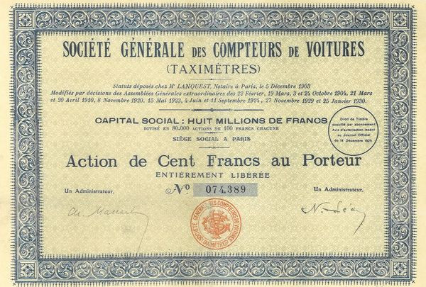 Sté Gale des Compteurs de Voitures (Taximètres)