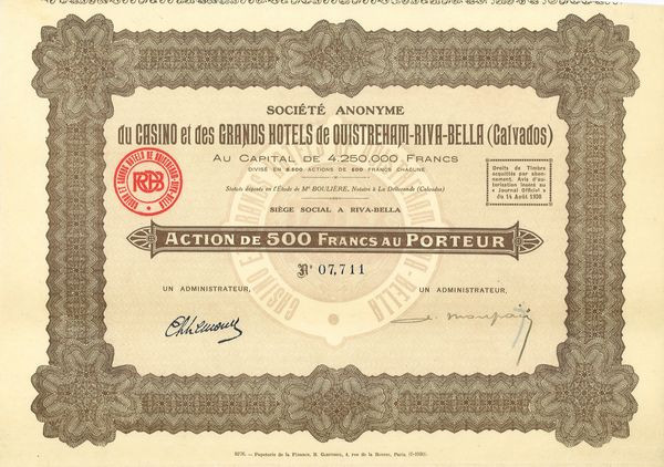 S.A. du Casino et des Grands Hôtels de Oustreham-Rive-Bella (Calvados)(1930)