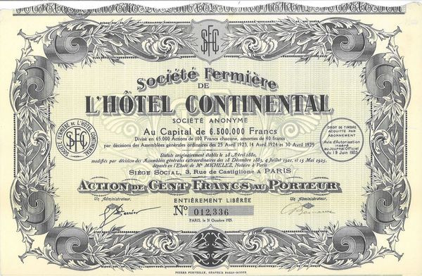 Sté Fermière de l'Hôtel Continental (Act 100 F)