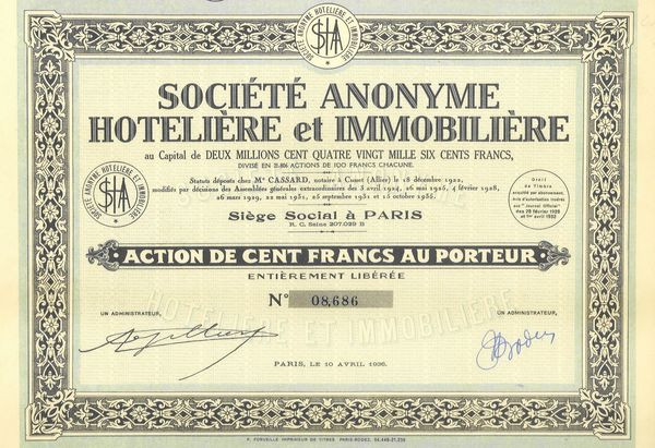 S.A. Hôtelière et Immobilière (Act 100 F)