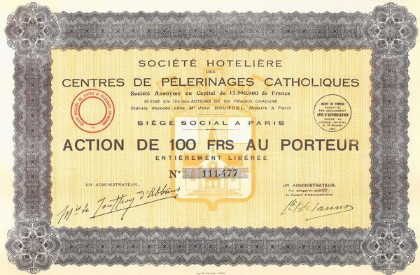 Sté Hôtelière des Centres de Pélerinages Catholiques (Act 100 F)