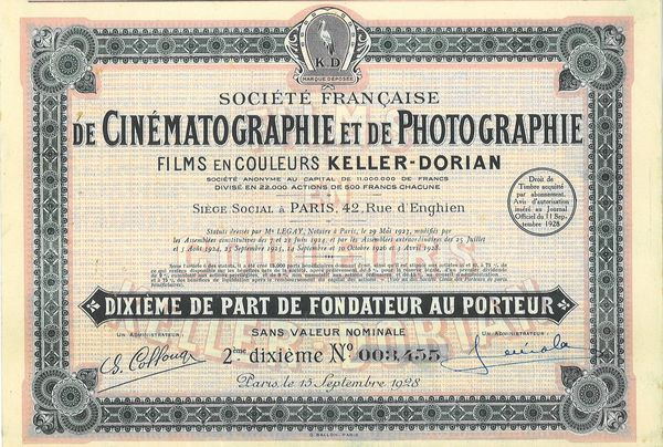 Sté Française de Cinématographie et de Photographie Films en Couleur Keller-Dorian (2 10ème de PF)