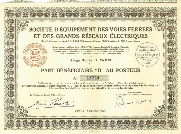 Sté d'Equipement des Voies ferrées et des Grands Réseaux Electriques (PB "B")