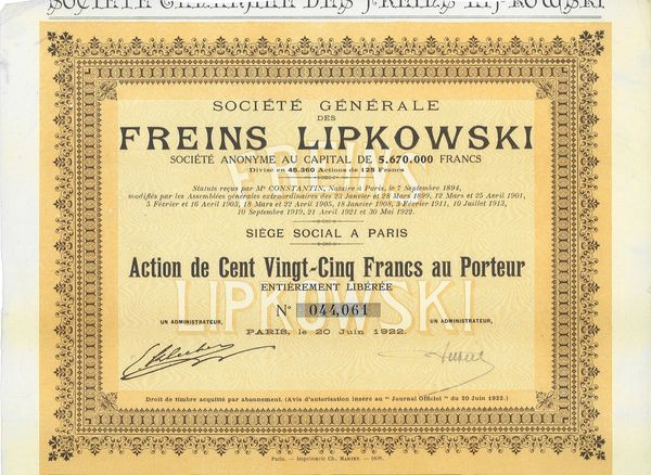 Sté Gale des Freins Lipkowski (Act)(1922)