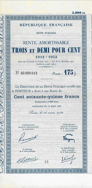 Rente Amortissable 3.5 % 1942-1952 5000 F - 175 F