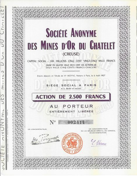 S.A. des Mines d'Or du Chatelet (Creuse)