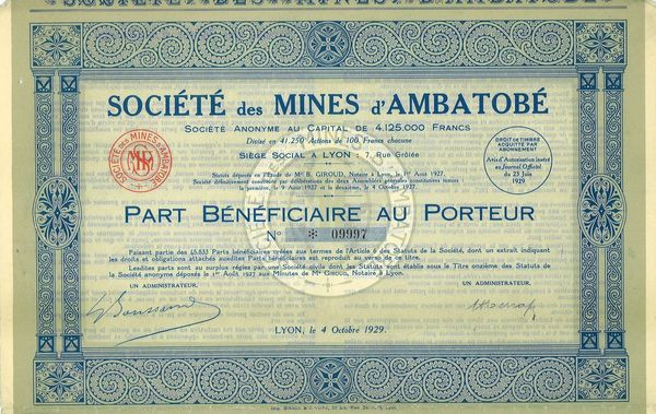 With a rich catalog of 11006 collectible shares and bonds from around the world, ScripoFrance offers you 9840 authentic pieces already in stock and ready to join your collection.
