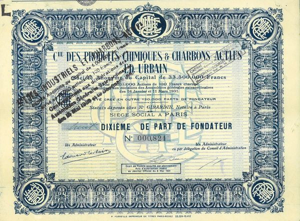 Cie des produits Chimiques & Charbons Actifs Ed. Urbain (10ème PF)