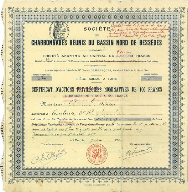Sté des Charbonnages Réunis du Bassin Nord de Bessèges