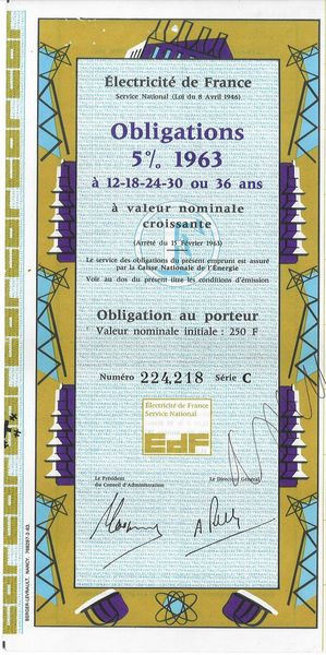Electricité de France - Obligations 5 % 1963 à 12-18-24-30 ou 36 ans