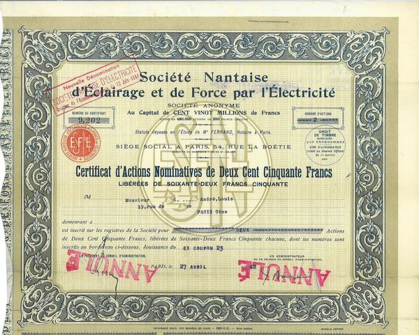 Sté Nantaise d'Eclairage et de Force par l'Electricité (certif)