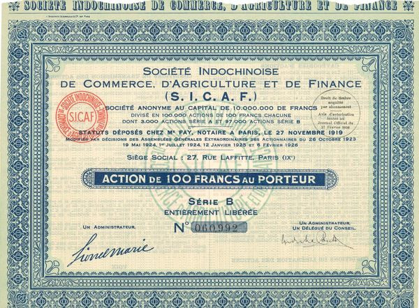 Sté Indochinoise de Commerce. d'Agriculture et de Finance (S.I.C.A.F.) (Act 100 F)