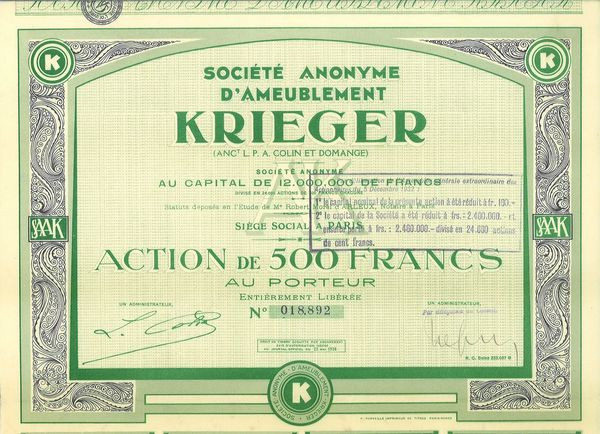 S.A. d'Ameublement Krieger (Anc L.P.A. Colin et Domange) (Act)