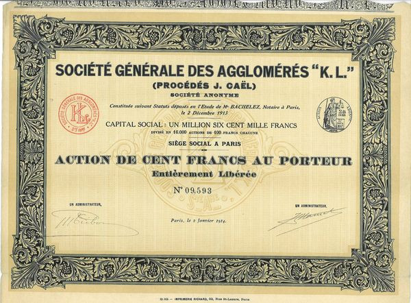 Sté Gale des Agglomérés "K.L." (procédés J. Caël)