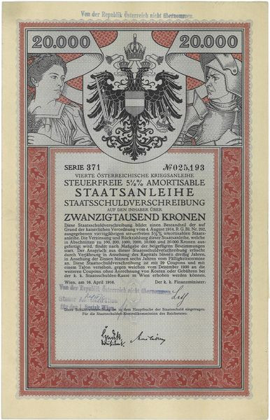 Vierte Österr. Kriegsanleihe Steuerfreie 5 1/2 % amortisable Staatsanleihe (20000 K)