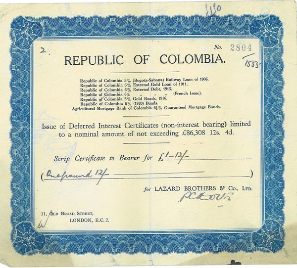 Republic of Colombia - Issue of Deferred Interests Certificates