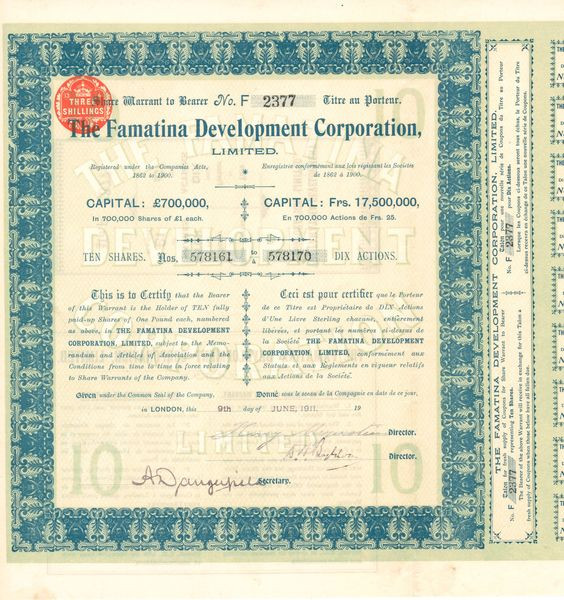 The Famatina Development Corporation Limited (Titre 10 Actions 25 Fr)
