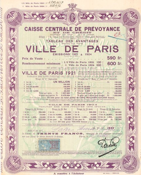 Caisse Centrale de Prévoyance et de Crédit Ville de Paris (Act 590 F)