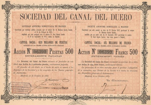 Sociedad del Canal del Duero (Act 500 Pesetas)