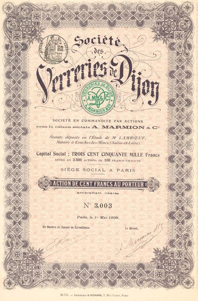 Sté des Verreries de Dijon (A. Marmion & Cie) (Act 100 F)