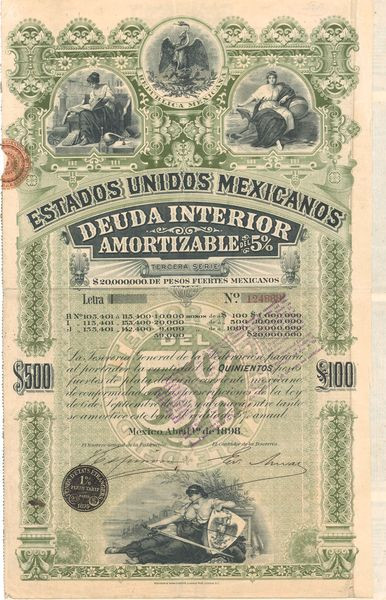 Estados Unidos Mexicanos - Deuda Interior Amortizable 5 % - $ 500 - 1898