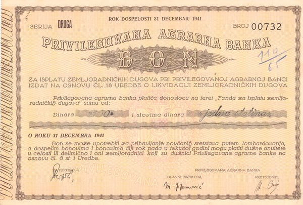 Privilegovana Agrarna Banka (Bon 100 dinars)