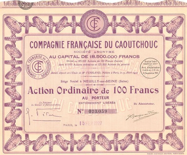Cie Française du Caoutchouc (Act Ordinaire 100 F)