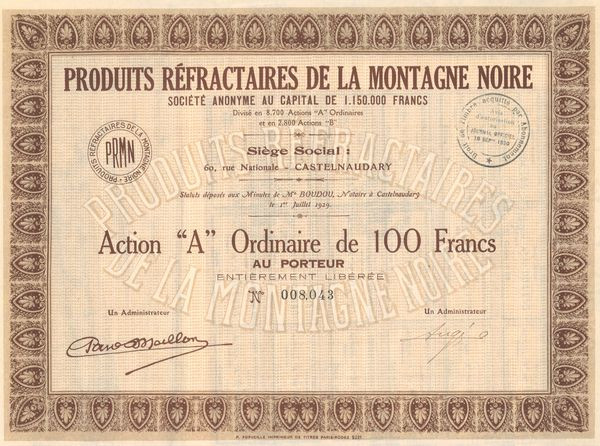 Prduits Réfractaires de la Montagne Noire (Act "A" Ordi 100 F)